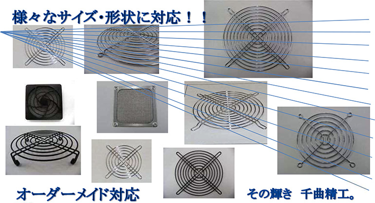 パソコン・FA機器・工作機械等で使われるファンモーター用のフィンガーガード・ファンガードを製造してお