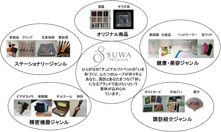 SUWAプレミアムはモノづくりの盛んな諏訪地域の企業や工房が商品を持ち寄り、販売する事で
