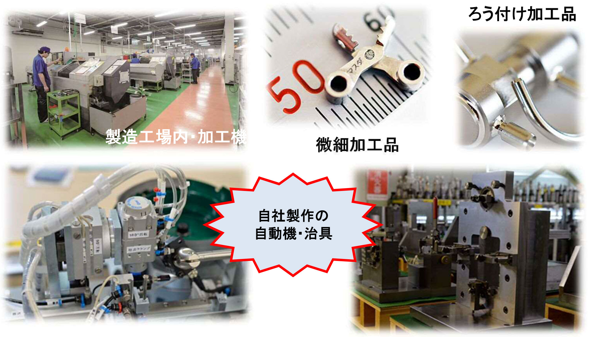 | 企業紹介 | 精密切削・放電加工 接合:ろう付け・微細レーザー溶接 パイプ曲げ・金属成形加工 光学機器(顕微鏡)を中心とした組立 精密板金(シートメタル) |