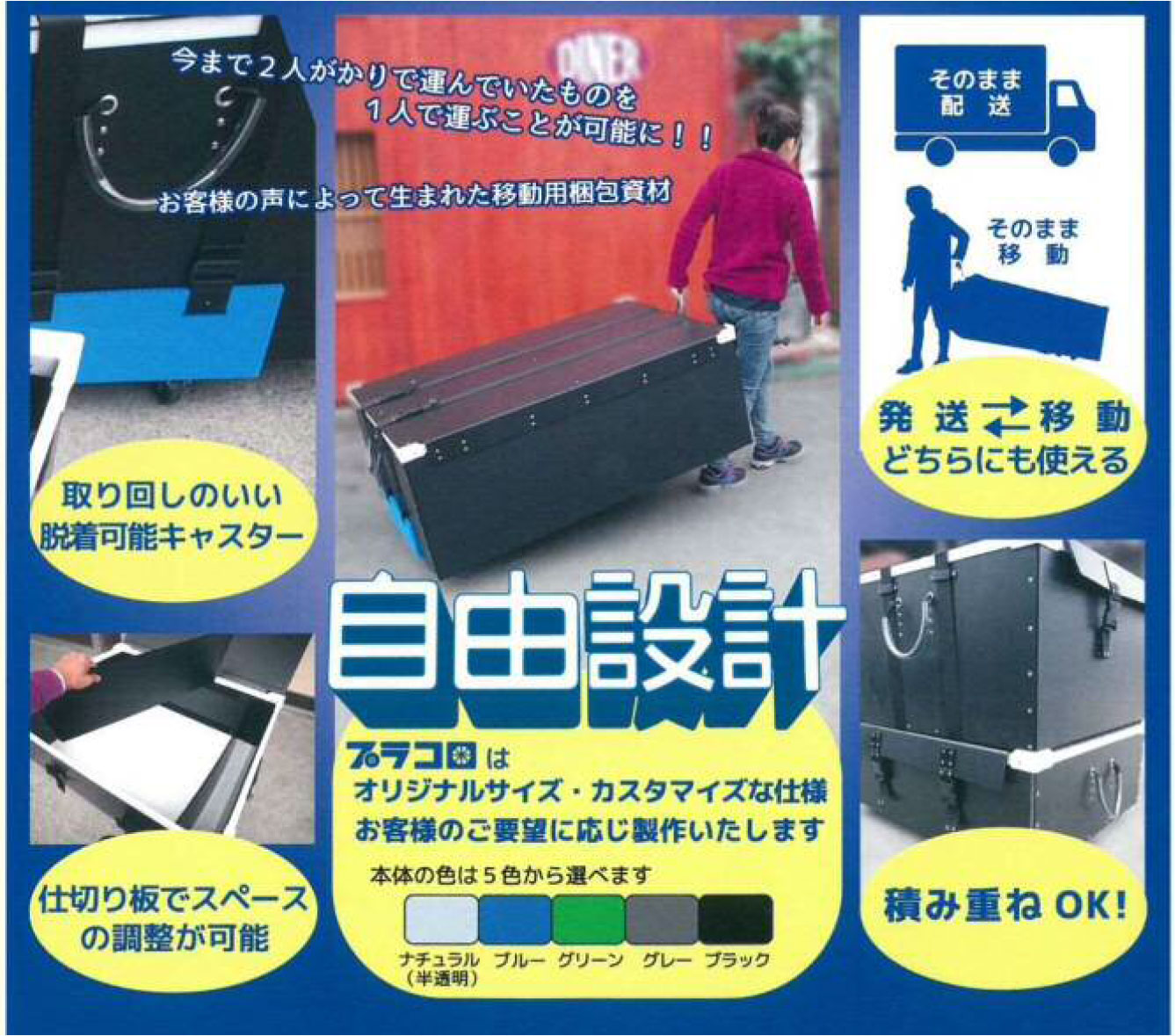 ・見本市や展示会などでの展示用見本品、資料の運搬が「楽」になる移動用梱包アイテムです。