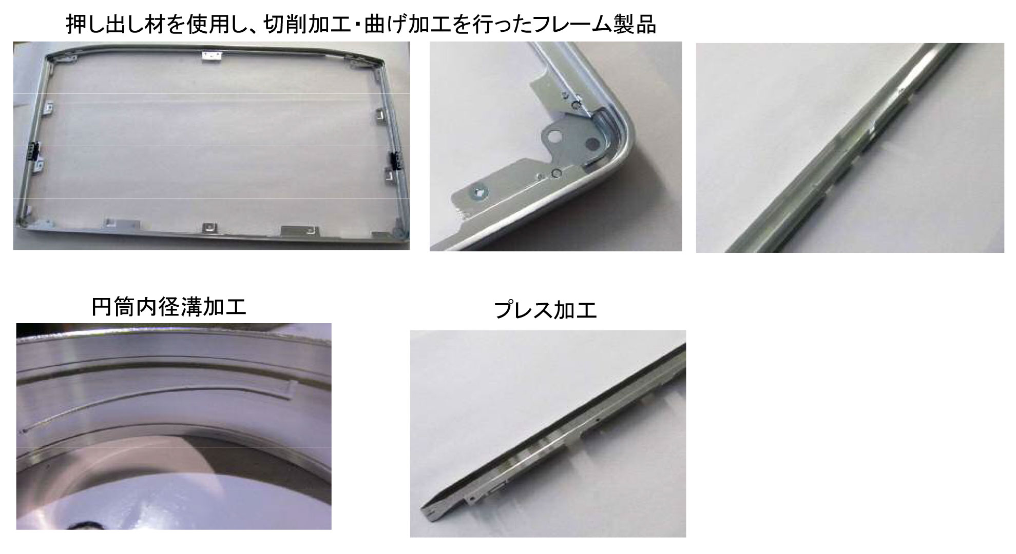 日本の技術力と、中国の生産力で、すべての工程を社内で行う事により、コスト・短応期の対応が可能です。 押し出し材の製造から、切削 ・ 精密プレス ・ 曲げ ・アルマイト・塗装を社内の一貫した製造ラインで行っています。 様々な材料の金属加工を行っており、特に押し出し材を使用したフレーム製品の加工を得意としています。 自社で自動バリ取り・研磨装置や、各種検査装置を開発を行い、生産力の向上・品質の安定と向上を図っています。