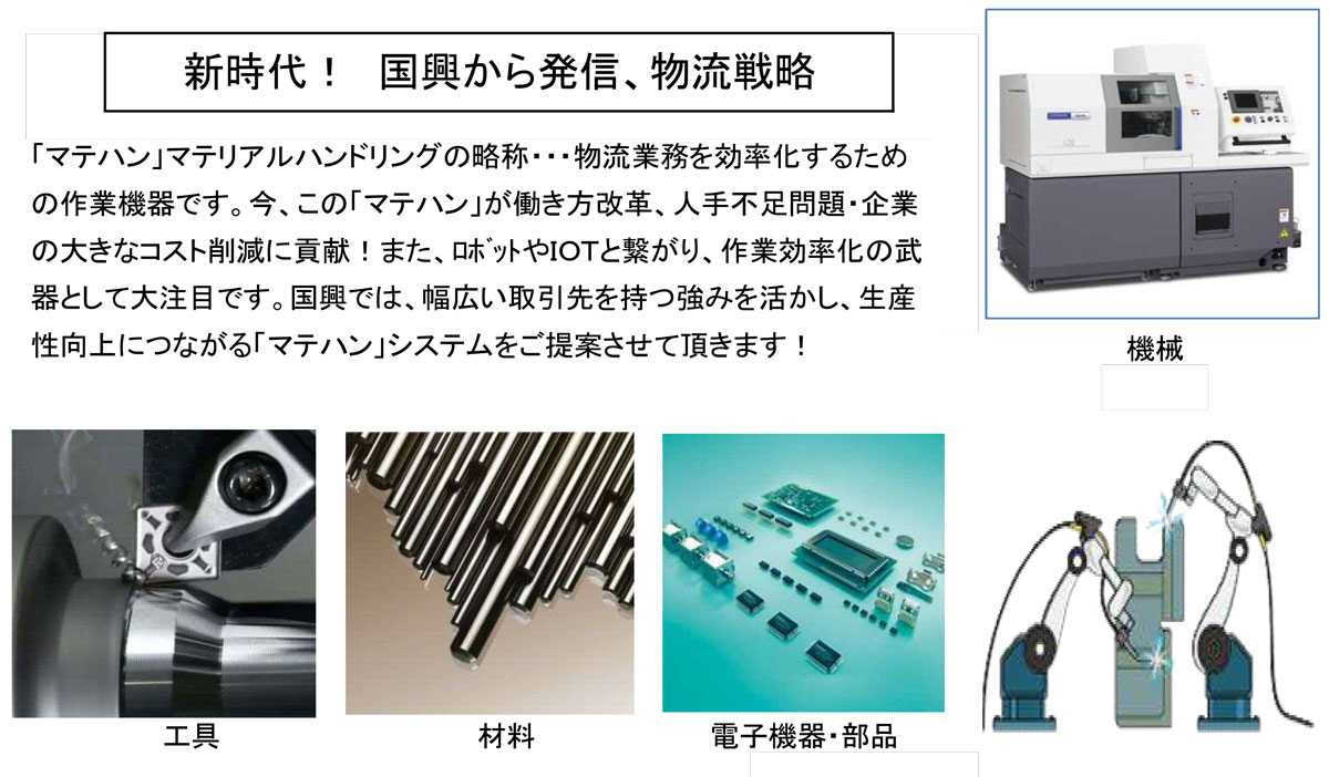 機械・工具・電子部品・環境機器・原材料の専門商社として、豊富な取扱いメーカーの中から、お客様のニーズに真にお応えするべく、常に最新、最適な情報をタイムリーにお届けしています。世の中が多様化、グローバル化し、環境への関心が深まる中で、国興は社員一人ひとりが問題意識を共有し、日々自己研鑚に励み、これからも皆様のご信頼にお応えできる良きパートナーであり続けます。