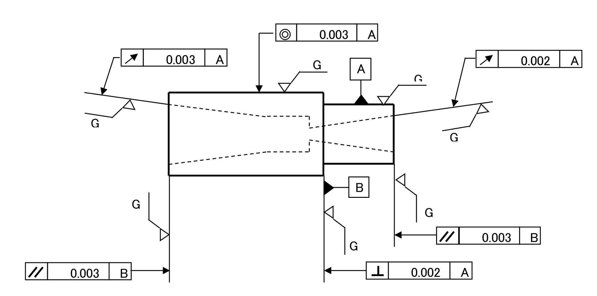 基準箇所Aに対し0.003mm以下に押える同芯度・同軸度・直角度等の高精度な加工、