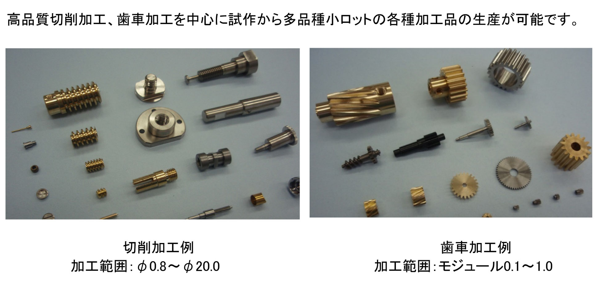 CNC複合自動旋盤による切削加工及び歯車加工を行っています。