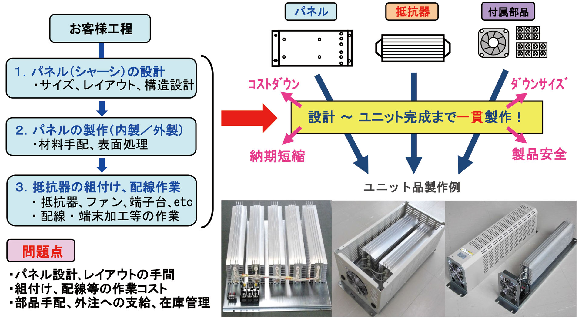 ■お客様のご要求仕様に合わせ、カスタム抵抗ユニットを設計~完成まで一貫製作致します。