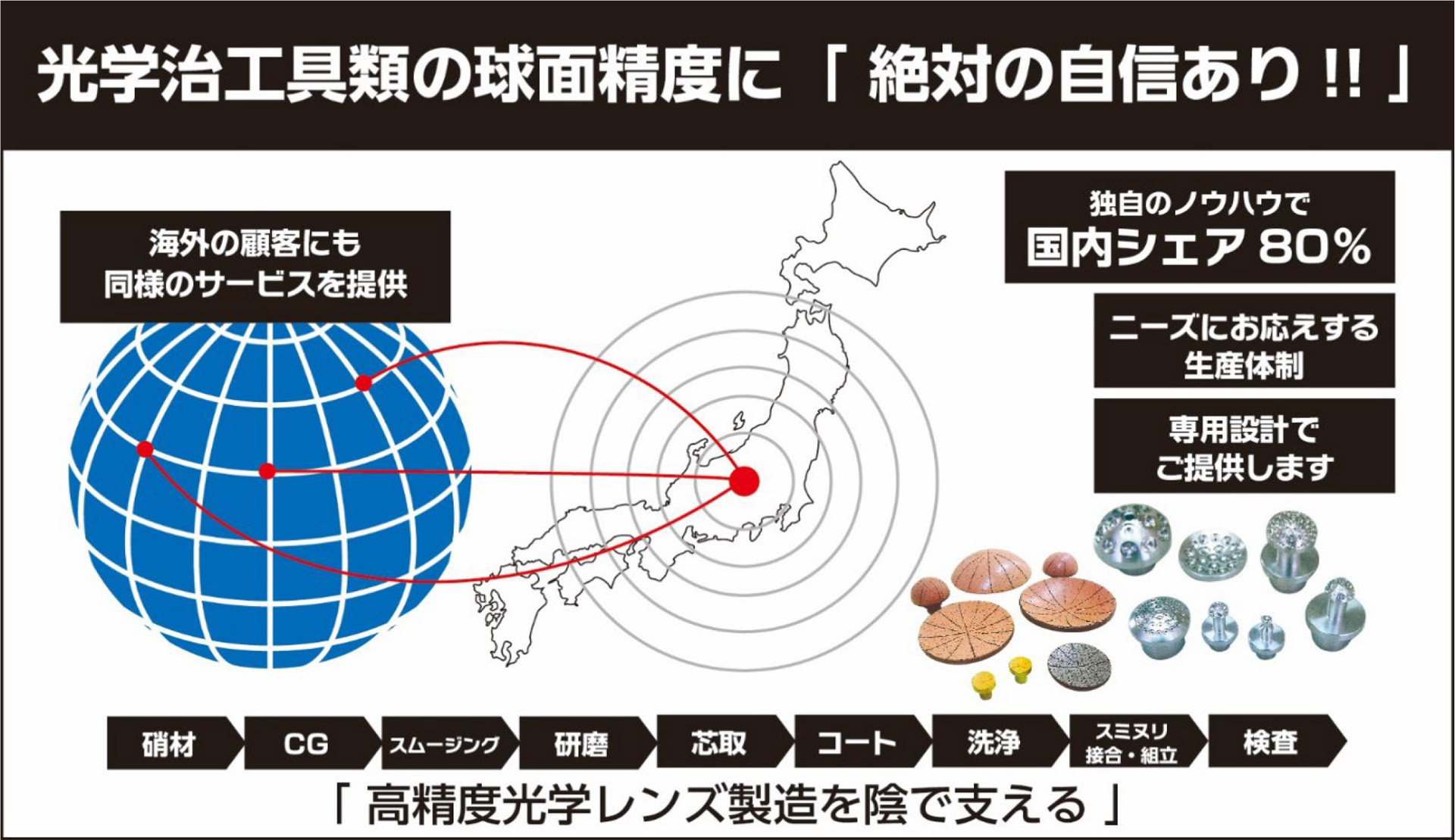 光学レンズ製造の基礎を支える球面加工精度の匠!